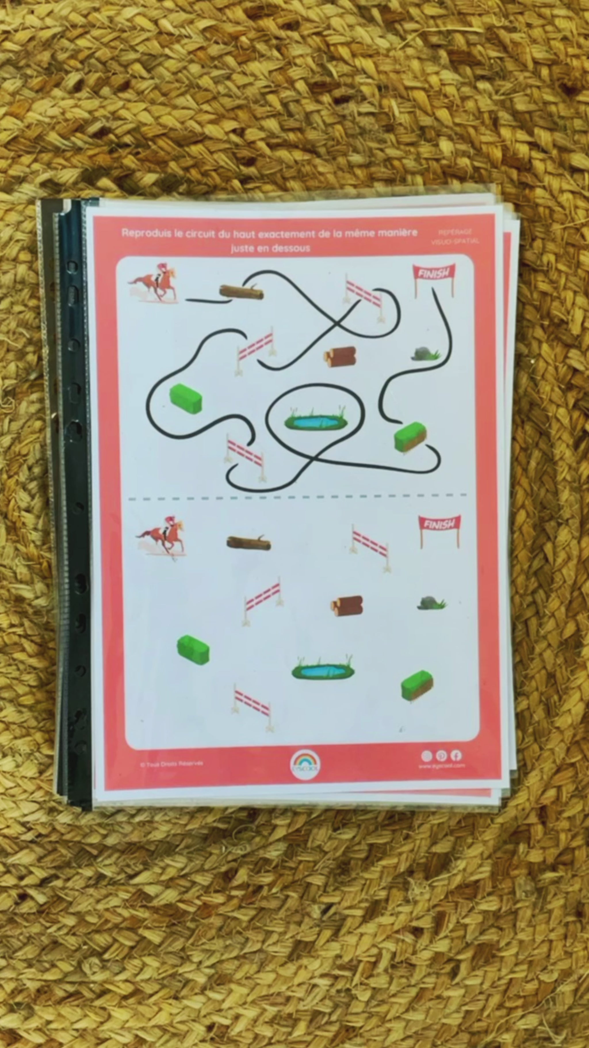 Reproduis avec précision le parcours présenté en haut de la page ! Une activité idéale pour stimuler les compétences visuo-spatiales, la coordination œil-main, l'exploration visuelle et la motricité fine, tout en développant l’attention et la concentration.